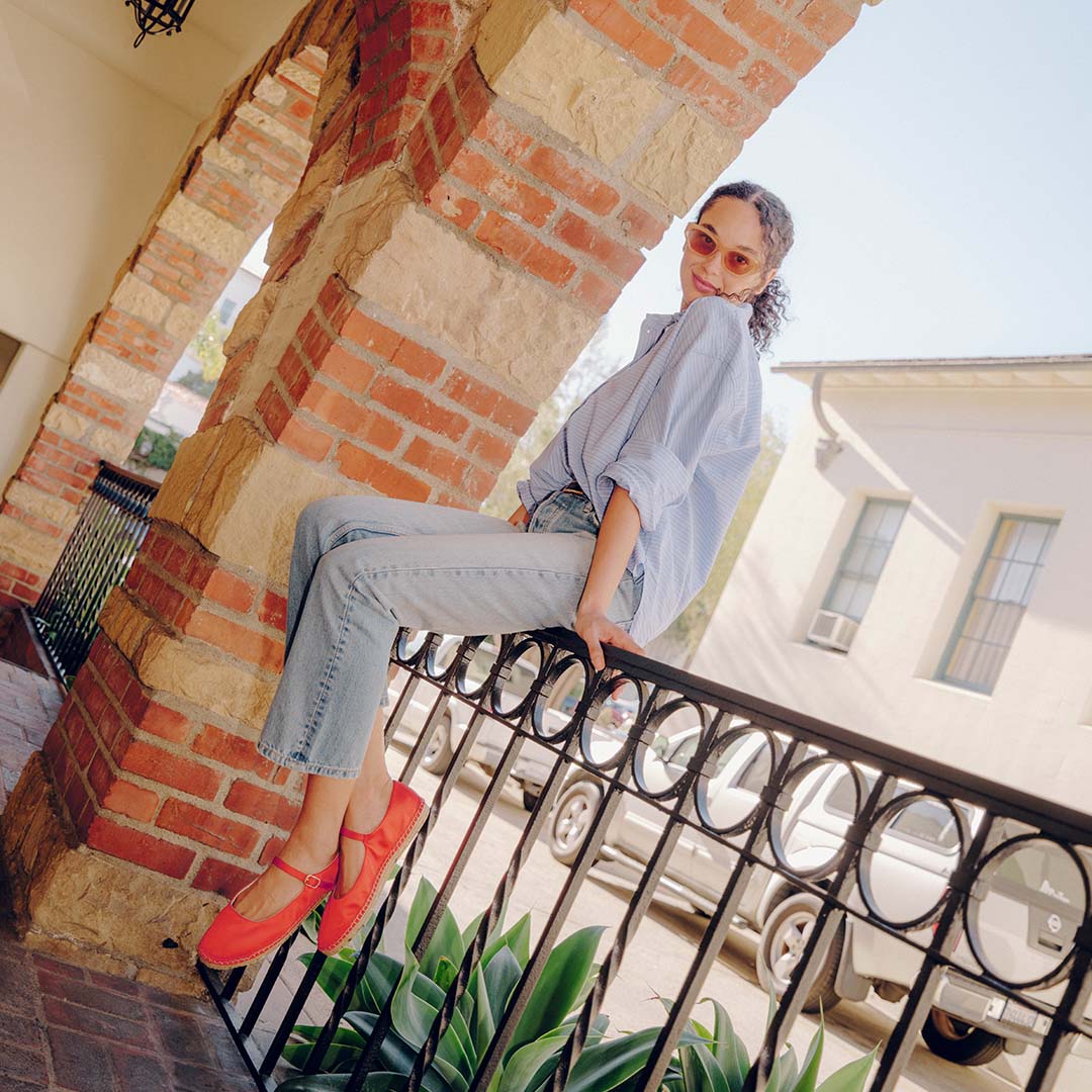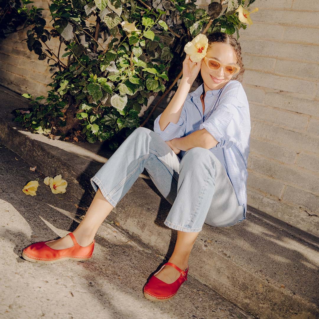 The Miramar Espadrille is a Mary Jane-inspired slip on. Crafted with hand stitched edging, jute wrapped sidewalls, and finished with a gold buckle detail. Featuring extra arch support and heel padding for added comfort.