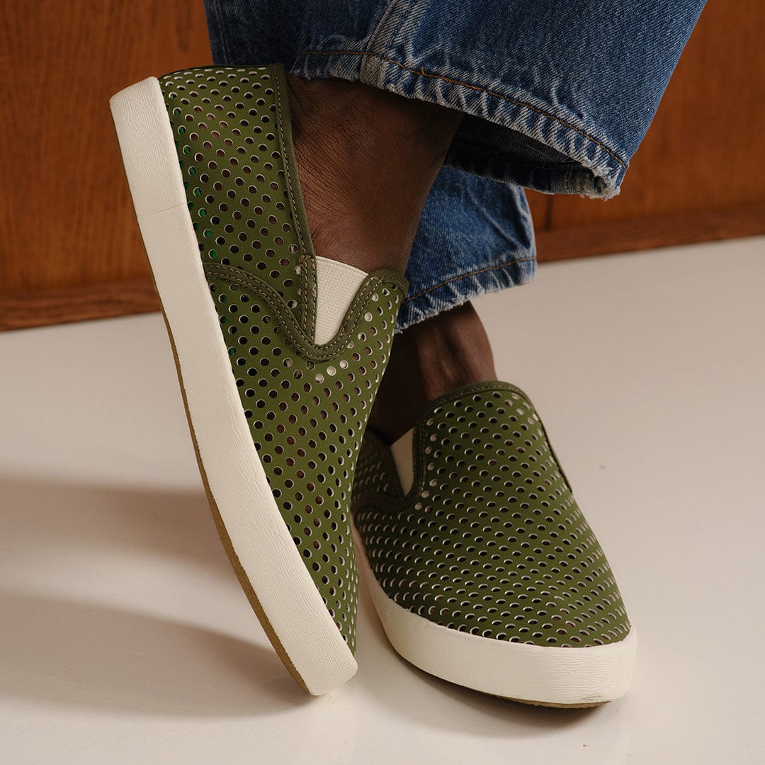 A classic summertime slip on reimagined in a long-lasting vegan leather alternative with extra-wide perforations for that airflow and style you want on the sunniest days of the year.