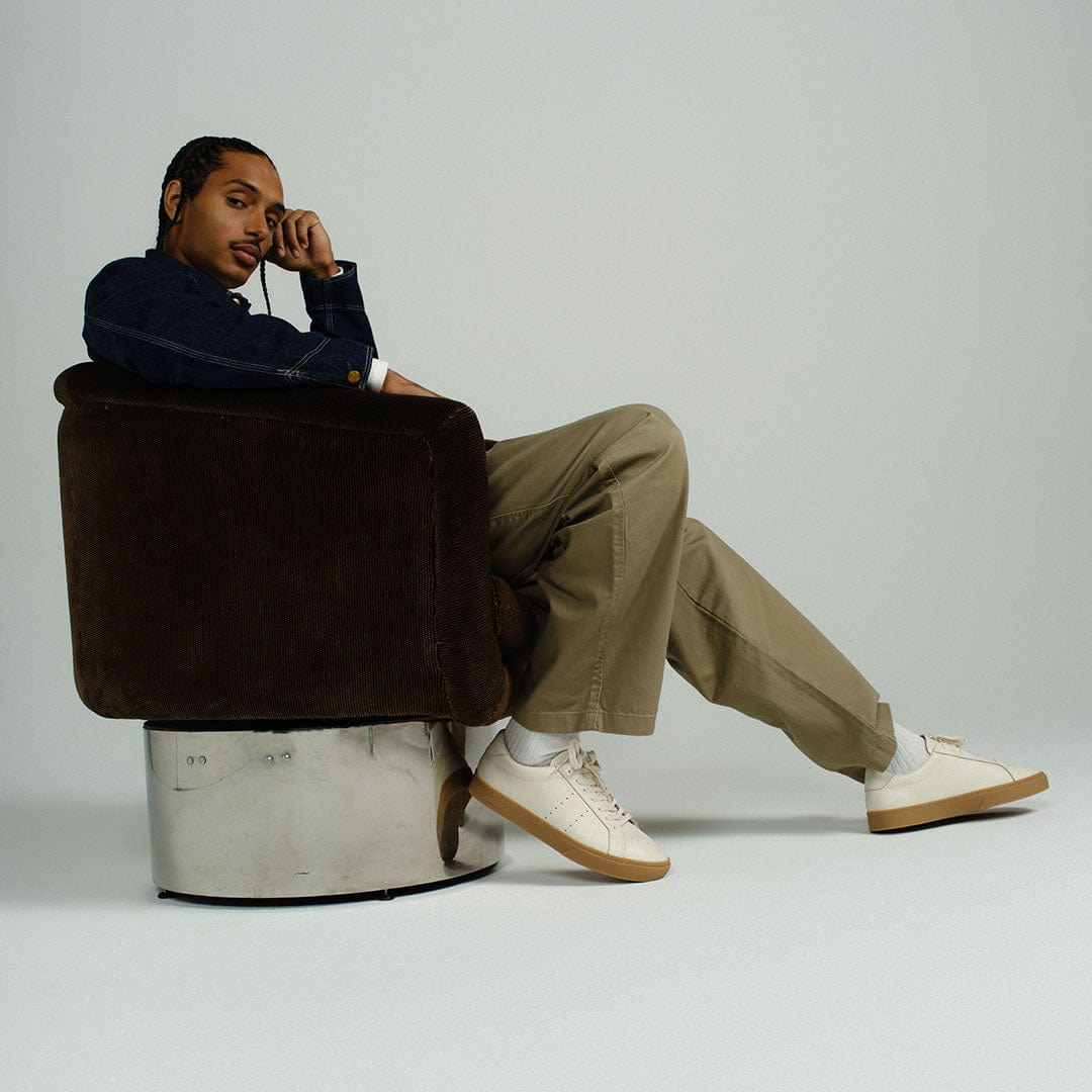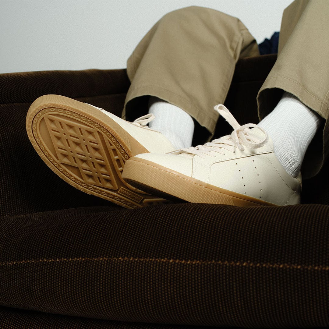 An elevated sneaker crafted with your everyday closet in mind. Constructed with a subtle neutral and sophisticated glossy leather upper that effortlessly pulls your whole look together. Designed and named to celebrate our 60th "diamond" anniversary as a sneaker brand. Features a vintage SeaVees diamond-pattern outsole, recreated from a single screenshot of an eBay listing we could never get our hands on. Finished with a heritage webbing inside the heel from our original ‘60s designs.