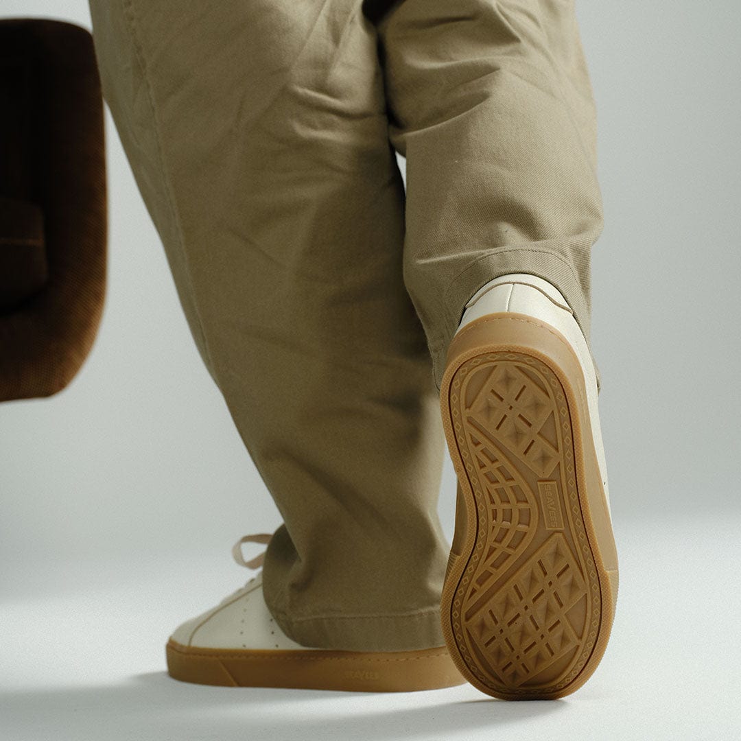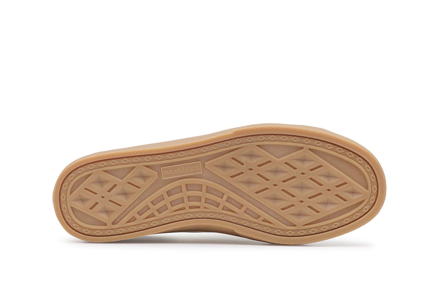 An elevated sneaker crafted with your everyday closet in mind. Designed and named to celebrate our 60th "diamond" anniversary as a sneaker brand. Features a vintage SeaVees diamond-pattern outsole, recreated from a single screenshot of an eBay listing we could never get our hands on. Constructed with a subtle and sophisticated glossy leather upper. Finished with a flag tag made from the same heritage webbing used in our original ‘60s designs.