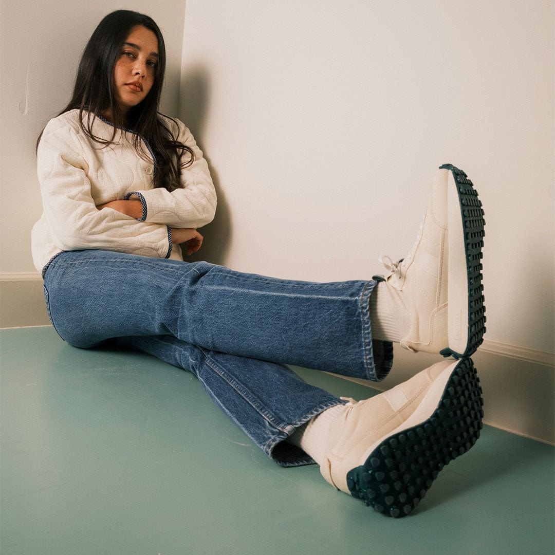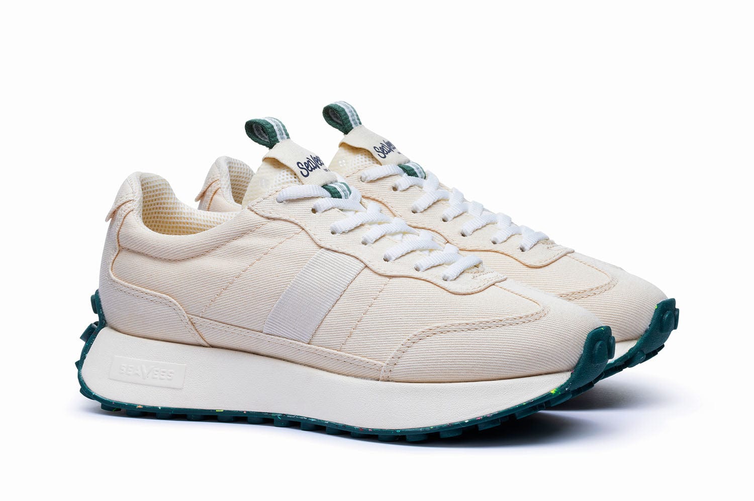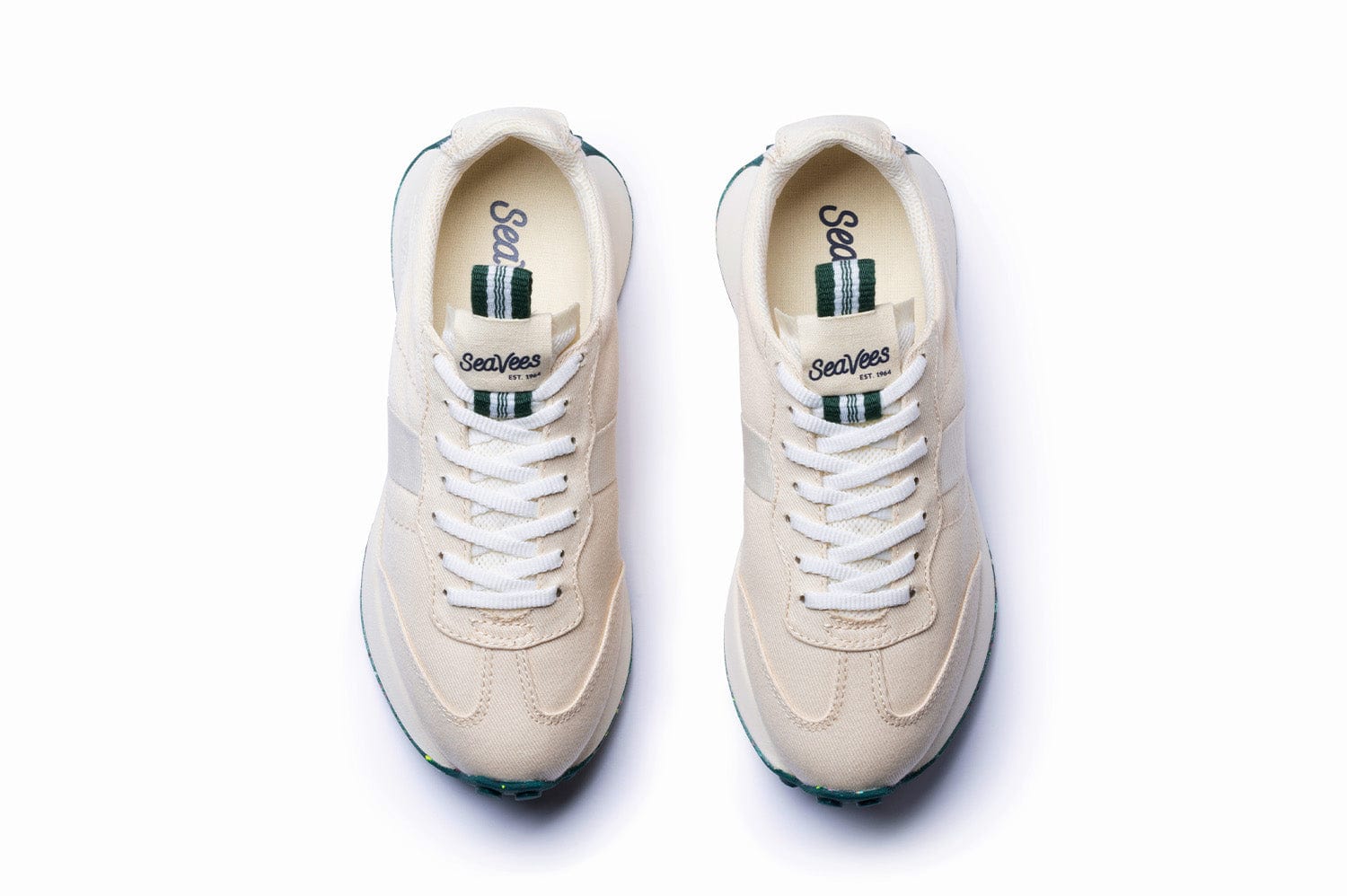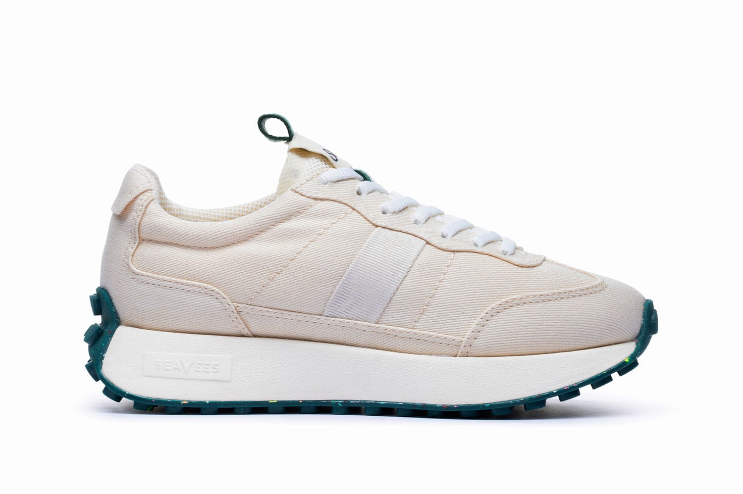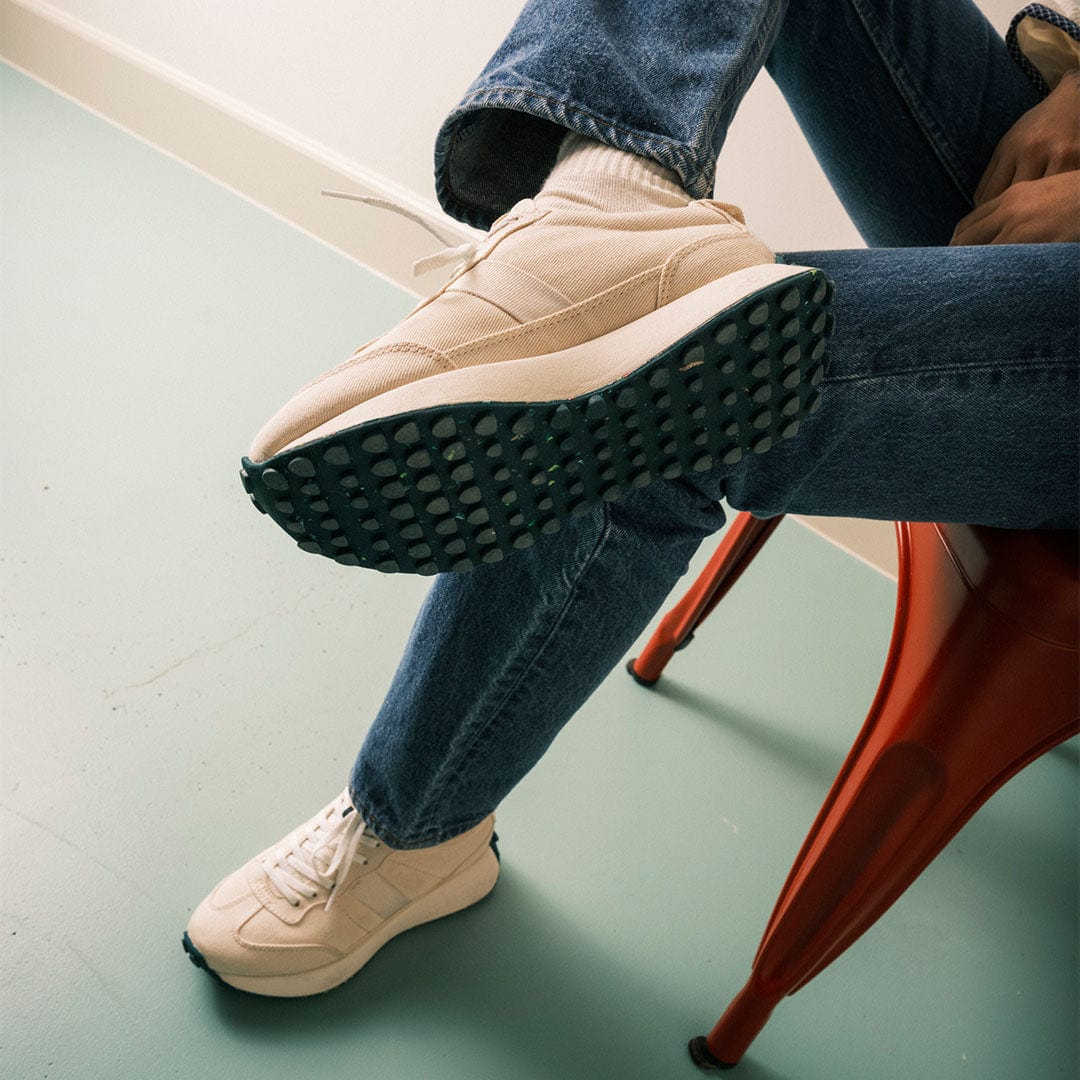 Our first-ever vegan rendition of this '90s-inspired lightweight sporty trainer. Crafted with a sleek "high-to-low profile" silhouette and unique acorn treaded sole. A subtle hint to our brand logo inspired by California's iconic shaped highway signs. Finished with a pull tab featuring the same heritage webbing design as our shoes from the '60s.