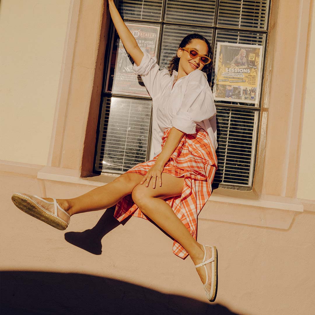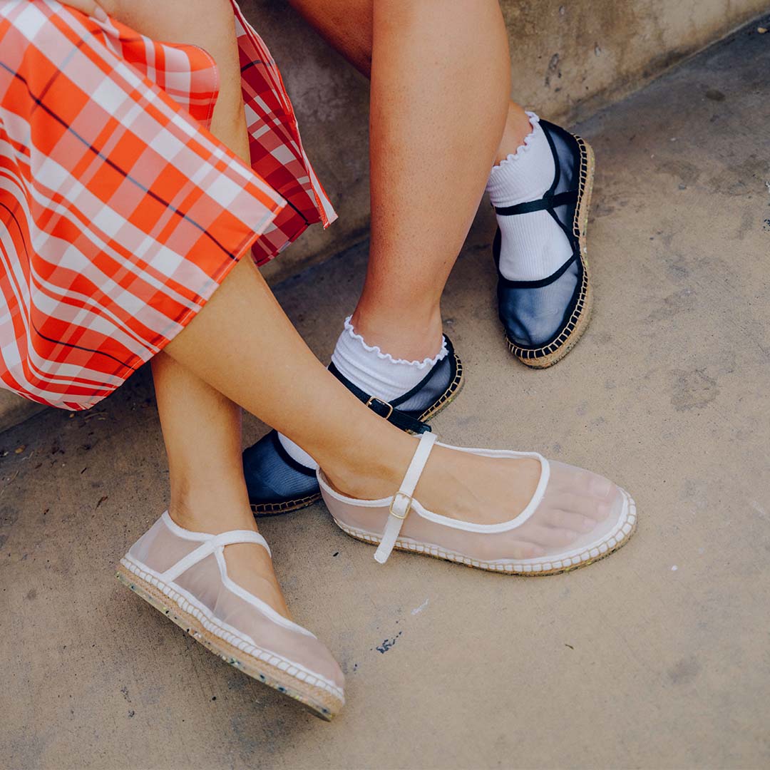 The Miramar Espadrille is a Mary Jane-inspired slip on. Crafted with hand stitched edging, jute wrapped sidewalls, and finished with a gold buckle detail. Featuring extra arch support and heel padding for added comfort.