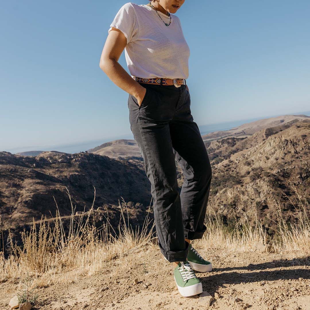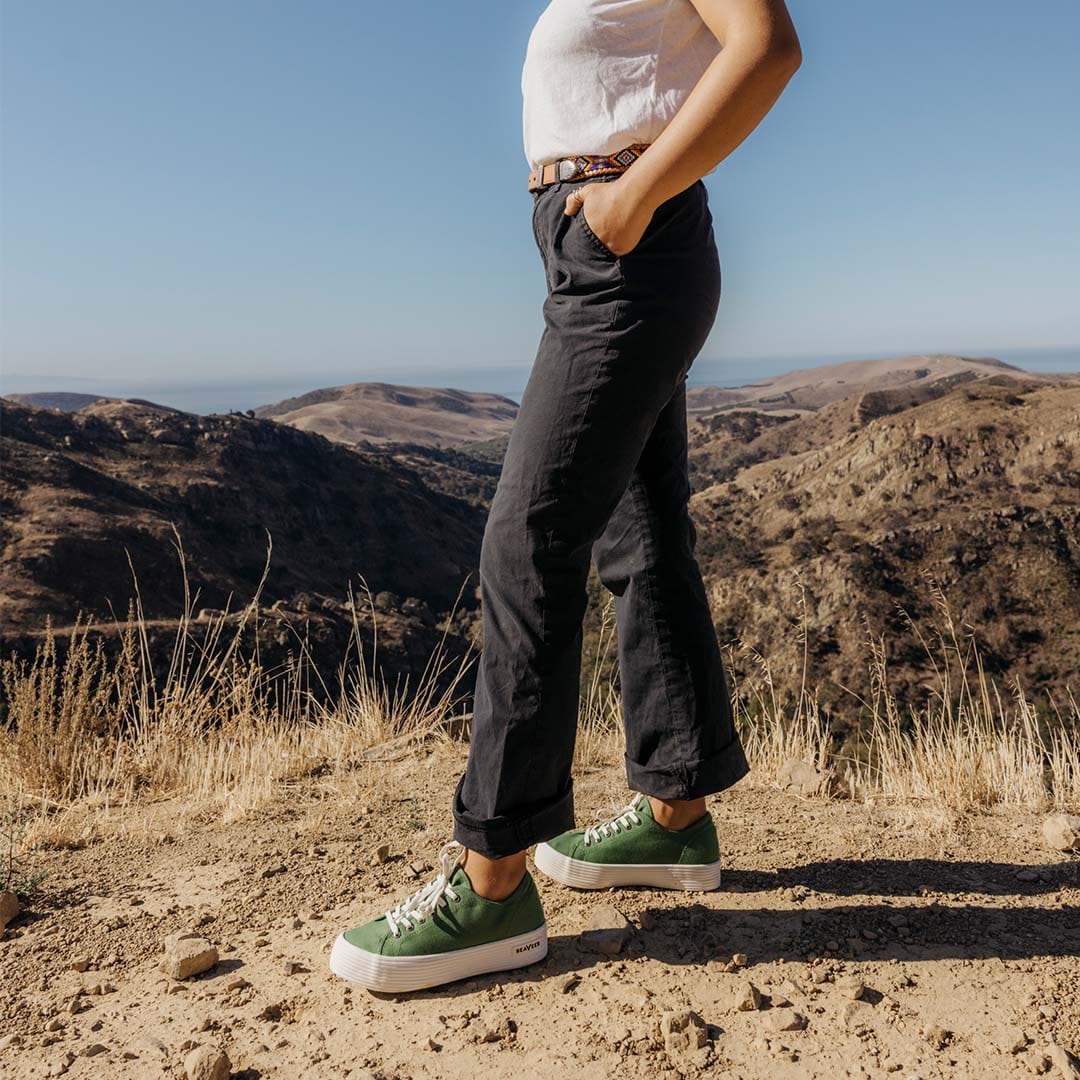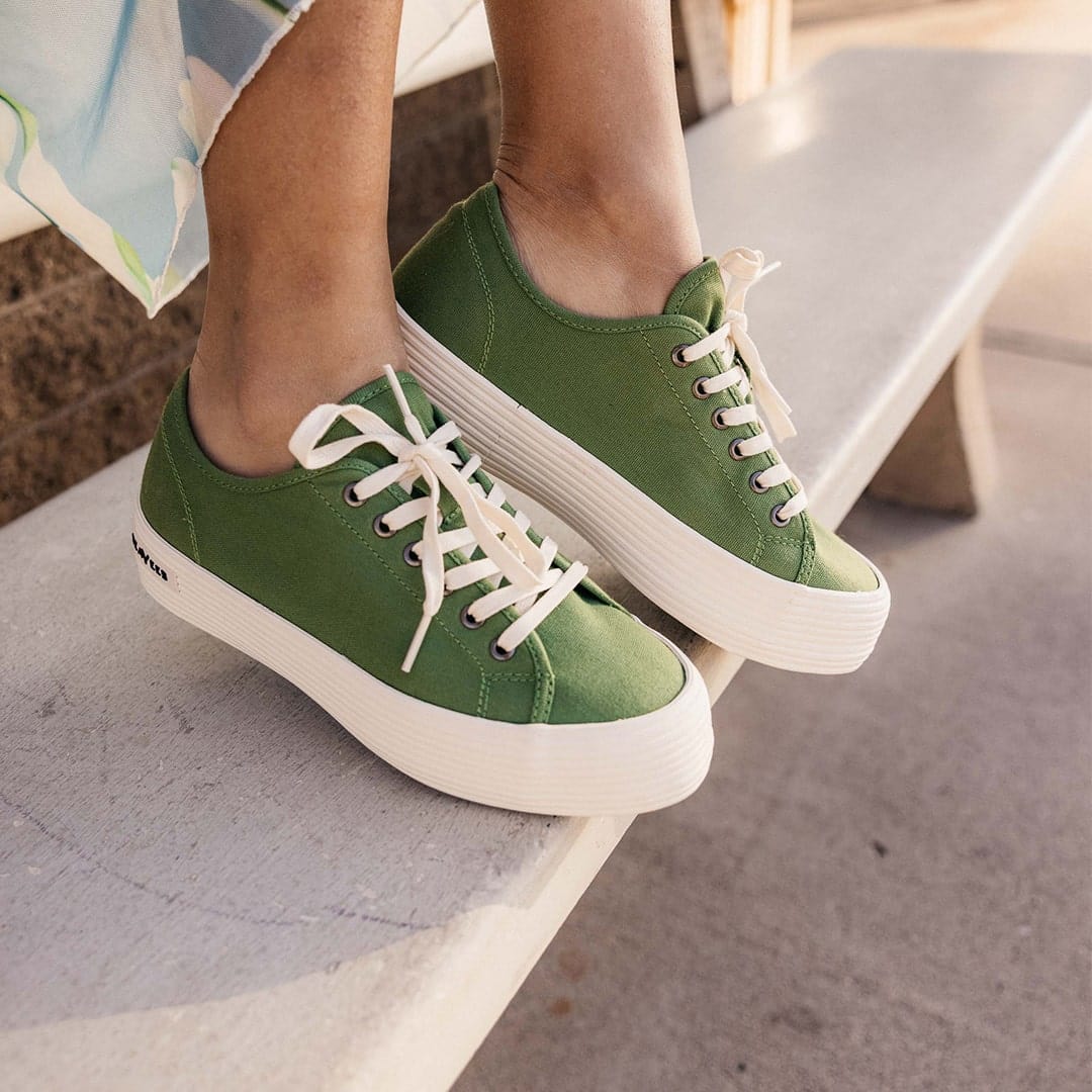 An elevated platform version of the Monterey Sneaker Original, that is casually cute and goes with everything. Detailed with matching stitching and silver eyelets.